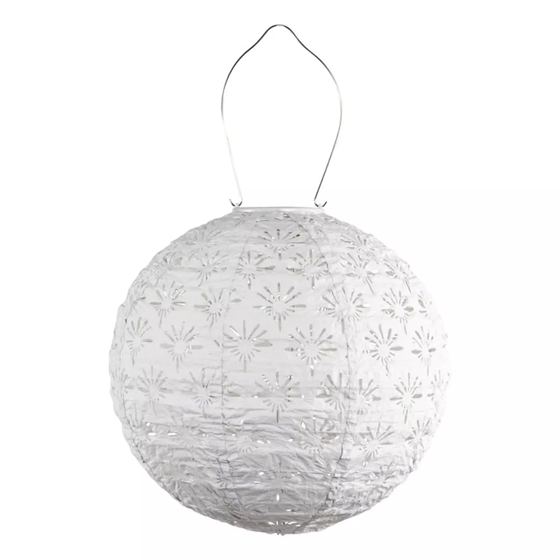 The Deco Globe is a stylish and eco-friendly solar lantern that combines a modern globe shape with a sophisticated 1920's Art Deco design. With its smooth geometric patterns and bold repeating punch, this 12" round solar lantern adds a touch of elegance to any outdoor space.