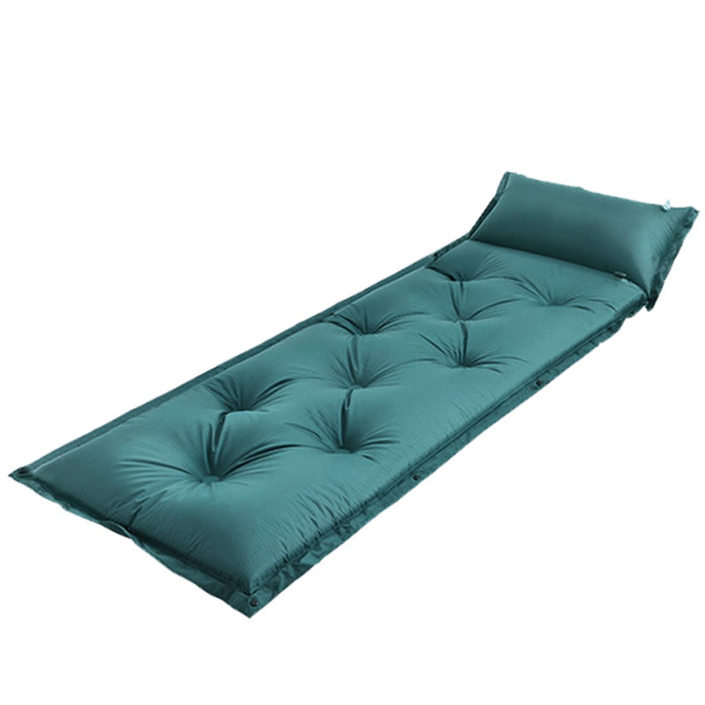 Camping Sleeping Pad Inflatable Travel Pillow Ultralight Backpack Mattress UPER THICKNESS COMFORT & STABILITY & INSULATED: Makes out of sponge and ripstop nylon fabric with 40 denier thickness to keep the from leaking, and the thicken pad features a 5.5 inches height to provide a more comfortable experience and support no matter where you, which it¡¯s better than the traditional cell design, weight limits up to 300 pounds! R-value of 6 keeps you warm when camping in cold conditions DESIGNED FOR DIFFERENT SLEEP POSITION: Exclusive interior structure that distributes evenly, Designed with a 8 inches high integrated pillow to support your neck for a better sleep and the widen design allows you to your back or side as you prefer FAST & DEFLATION: Equipped with built-in inflator for easy inflating¨Conly takes about 3 minutes if inflate by hands; deflate completely in less than 2 minute out the deflation plug COMPACT AND LIGHTWEIGHT: Comes with storage bag to keep the sleeping pad in small size when hiking or camping; ideal for hiking when use alone or camping when use together with tank or sleeping bag Tips Avoid contact with sharp objects and keep away from high-temperature GET TWO SLEEPING SPACES IN ONE When you purchase two camping mat, you are receiving two sleeping spaces in one package. MULTI-PURPOSE: Ideal for various scenarios such as traveling, camping, hiking as well as used as a temporary bed when you move to a new house, rental apartment, prepare for your overnight guest Package Included: 1x Sleeping Mat 1x Storage Bag